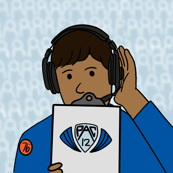 Caption: Coach Coach is trying to call a play. What is he saying? It sounds like “buy 8 gallons of gas at participating 76® locations to receive your voucher for a chance to win one of 1,500 Pac-12 prizes. “
